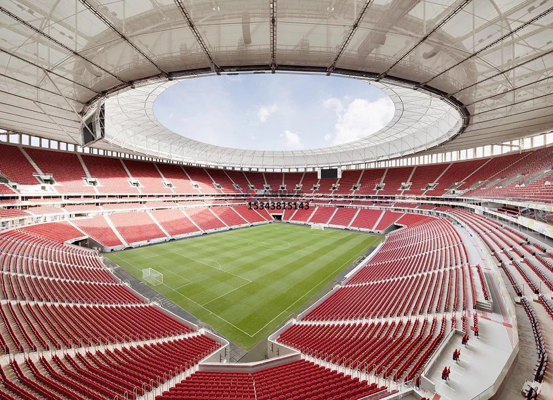 球場膜結(jié)構(gòu)景觀應(yīng)用形式:其應(yīng)用形式主要有球場頂棚、看臺設(shè)計(jì)、球場圍網(wǎng)和休息區(qū)遮陽棚等。在球場頂棚可覆蓋整個(gè)球場,為運(yùn)動(dòng)員和觀眾遮陽、擋雨,其獨(dú)特的曲面造型還能增加球場的觀賞性??磁_設(shè)計(jì)方面可營造出寬敞、舒適的觀賽環(huán)境,并且易于安裝、拆卸,方便球場維護(hù)。膜結(jié)構(gòu)球場圍網(wǎng)輕盈、美觀,既能起到隔離作用,又不會(huì)影響球場整體美觀,使球場空間更具通透感。也可為觀眾或運(yùn)動(dòng)員提供休息的遮陽場所,造型上可以與球場整體風(fēng)格相呼應(yīng),成為球場景觀的一部分。