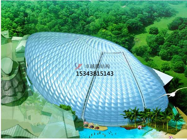 1.造型多變。ETFE膜結(jié)構(gòu)與其他膜結(jié)構(gòu)稍稍有些不同,它采用一小片一小片的ETFE膜材料安裝在多變的鋼構(gòu)件中,其造型可根據(jù)鋼構(gòu)件的造型而變,如:伊甸園的六邊形,水立方的不規(guī)則形狀等,賦予了建筑鮮活的生命,讓人一眼便能記住。