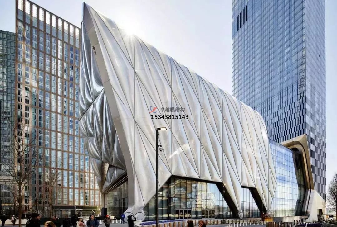 在哈德遜碼頭上,全新的跨界“棚屋”藝術(shù)中心(The Shed)于2019年4月5日對(duì)外開(kāi)放。藝術(shù)中心由著名建筑公司 Diller Scofidio+Renfro 和 Rockwell 集團(tuán)合作設(shè)計(jì),打造了覆蓋著ETFE氣枕膜材料的120英尺的伸縮式外殼,能夠通過(guò)滾輪將建筑延伸至“棚屋”的戶(hù)外廣場(chǎng),營(yíng)造更開(kāi)闊的半戶(hù)外空間,旨在創(chuàng)建世界上最具靈活性的文化機(jī)構(gòu)。