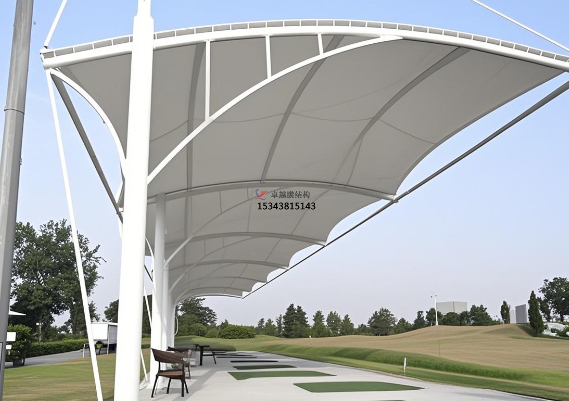 膜結(jié)構(gòu)資料具有杰出的柔韌性,可以依據(jù)不同高爾夫球場(chǎng)的全體風(fēng)格和規(guī)劃需求,塑造出豐厚多樣的造型。無(wú)論是流暢優(yōu)雅的曲線,還是簡(jiǎn)潔妥當(dāng)?shù)闹本€,亦或是富有創(chuàng)意的共同形狀,都能通過(guò)專業(yè)的規(guī)劃和施工得以完成。這種高度的定制靈敏性,使膜結(jié)構(gòu)罩棚可以與周邊自然景象完美交融,為球場(chǎng)增添共同的藝術(shù)氣味。