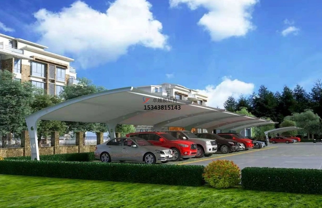 膜結(jié)構(gòu)車棚是現(xiàn)代大跨度空間結(jié)構(gòu)停車場的主要建設形式之一,具有自身重量輕、受力良好、造型別致等特點。這種結(jié)構(gòu)除了能滿足防風雨、防日曬等基本功能外,還有較好的標識招攬效果。
