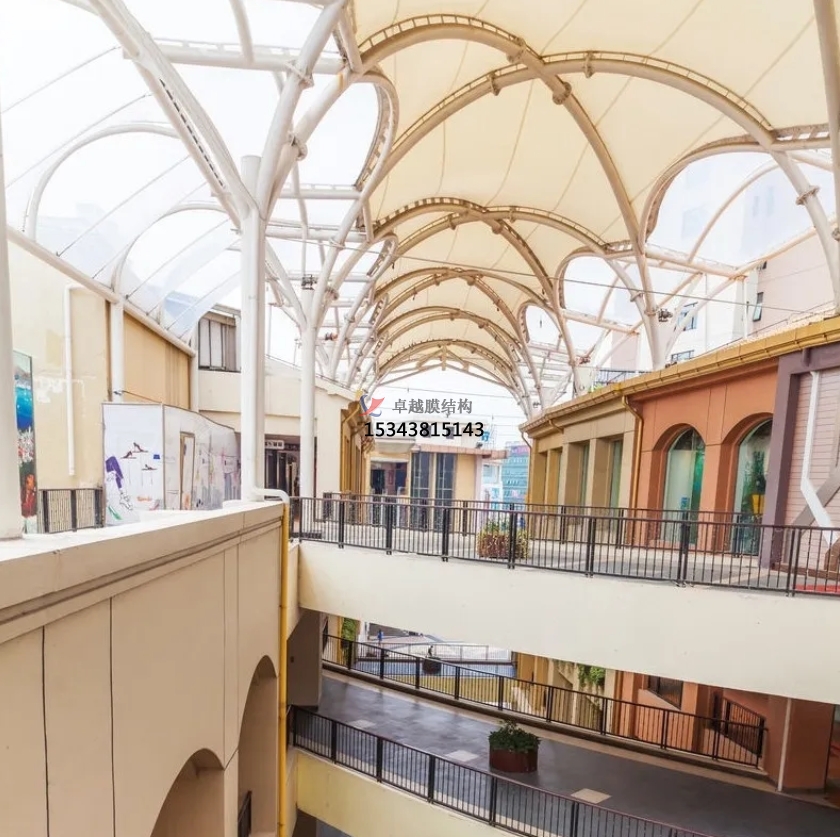 商業(yè)街膜結(jié)頂棚,普通指的是裝置在商業(yè)街頂部的膜結(jié)構(gòu)建筑,為逛街的人們起到遮陽擋雨的作用。