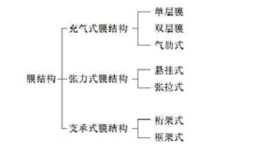 膜結構按結構可分為:骨格式膜結構、張拉式膜結構、充氣式膜結構。