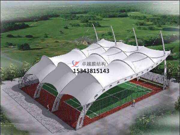 膜結構(Membrane Structure),即張拉膜結構(Tesioned Membrane Structure),是依靠膜材自身的張拉力和特殊的幾何形狀而構成穩(wěn)定的承力體系。膜結構通過(鋼架、鋼柱或鋼索)一定方式使其內部產生一定的預張應力以形成某種空間形狀,作為覆蓋結構,并能承受一定的外荷載作用的一種空間結構形式,膜只能承受拉力而不能受壓和彎曲,其曲面穩(wěn)定性是依靠互反向的曲率來保障,因此需制作成凹凸的空間曲面,故習慣上又稱空間膜結構。