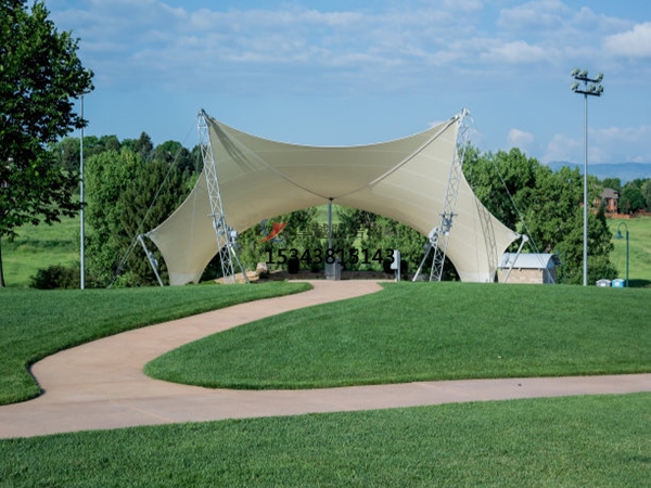 柔性材料具有透光和防紫外線功能,在一些室外建筑和環(huán)境小品中得到廣泛的應(yīng)用。正是由于這一特征,夜間的燈光設(shè)計使膜結(jié)構(gòu)具有鮮明的環(huán)境標(biāo)志特征。 優(yōu)美造型的膜材,不銹鋼配件和緊固件加上設(shè)計輕巧合理,表面處理嚴(yán)格的鋼結(jié)構(gòu)支撐,塑造出形式美觀,設(shè)計合理的膜結(jié)構(gòu),在當(dāng)今世界范圍內(nèi)的建筑環(huán)境設(shè)計中占有舉足輕重的地位。