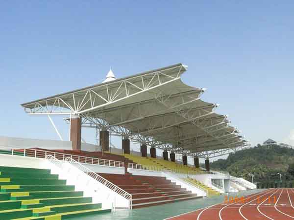張拉膜看臺主要用于各類地方體育場主席臺雨棚,各類學校體育場看臺雨棚遮蓋,我公司是國內(nèi)較早從事大懸挑張拉膜結(jié)構(gòu)看臺設(shè)計施工的專業(yè)廠家,下面介紹一下我們在湖州市周邊縣市完工的一些張拉膜看臺設(shè)計施工案例,我公司先后在湖州周邊承接了湖州師范學院張拉膜看臺雨棚、湖州職業(yè)技術(shù)學院張拉膜看臺罩棚等設(shè)計施工項目,簡介如下: