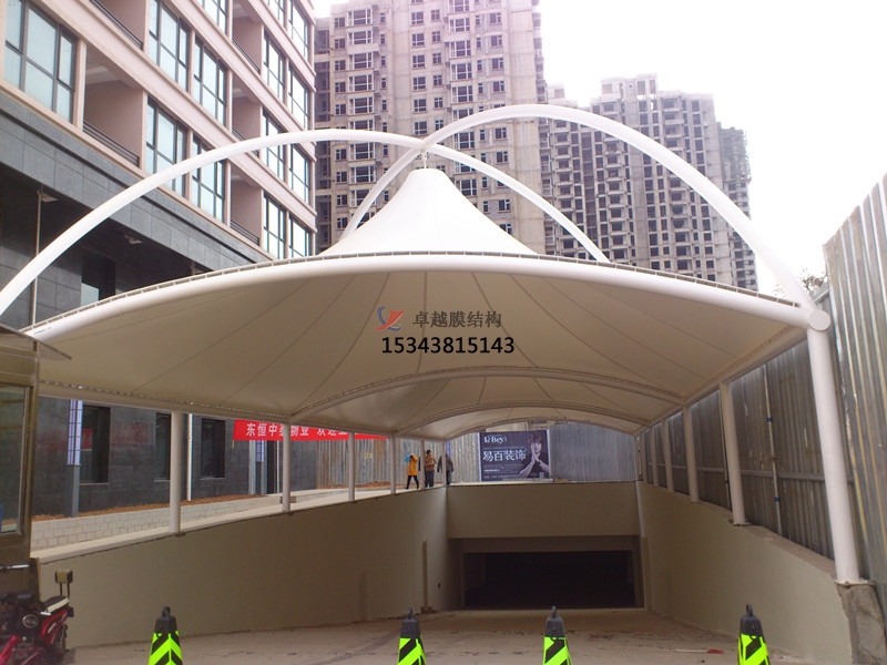 1、建筑膜材——車庫入口膜結(jié)構(gòu)雨棚的主力軍