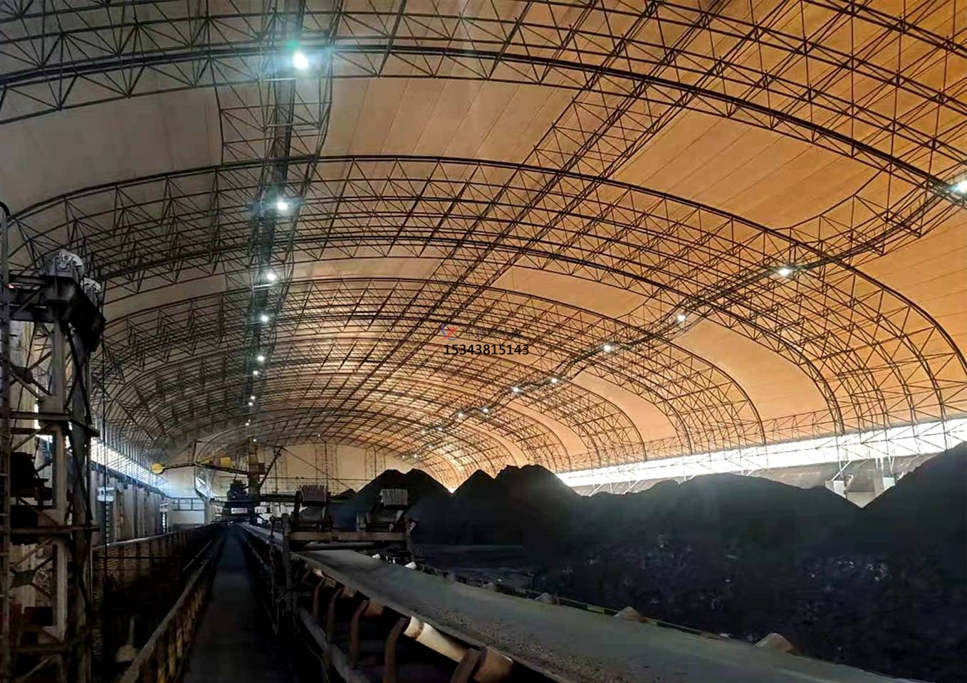 ‌防塵與減排‌:膜結(jié)構(gòu)煤棚通過(guò)全封閉設(shè)計(jì),有效阻止了煤炭裝卸過(guò)程中產(chǎn)生的粉塵外泄,減少了空氣污染。同時(shí),內(nèi)置的除塵系統(tǒng)可進(jìn)一步降低棚內(nèi)粉塵濃度,符合嚴(yán)格的環(huán)保排放標(biāo)準(zhǔn)。