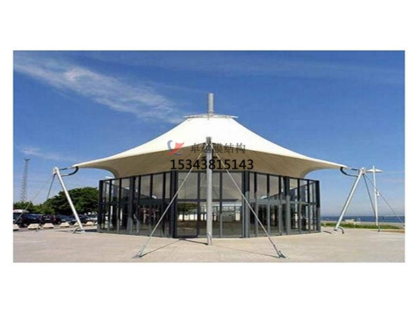 膜結構車棚膜結構所用的膜材料為具有、阻燃、耐久、自潔等特性的復合材料,一般由基布和涂層二部分組成?;贾饕捎镁壑w維或玻璃纖維絲編織而成,有平織和絞等多種編織方法,不同的膜結構車蓬編織方法影響著膜材料的經緯向力學性能指標,膜的抗拉強度和抗撕裂強度等;涂層材料主要有聚四氟乙烯和聚氯乙烯,在一定程度上提高了膜材料各項強度指標,為提高膜材料的耐久、自潔等特性,表面往往有一層氟涂層或硅涂層,膜材料的耐火、耐久及防水、自潔等性能,決定著膜材料的物理特性。
