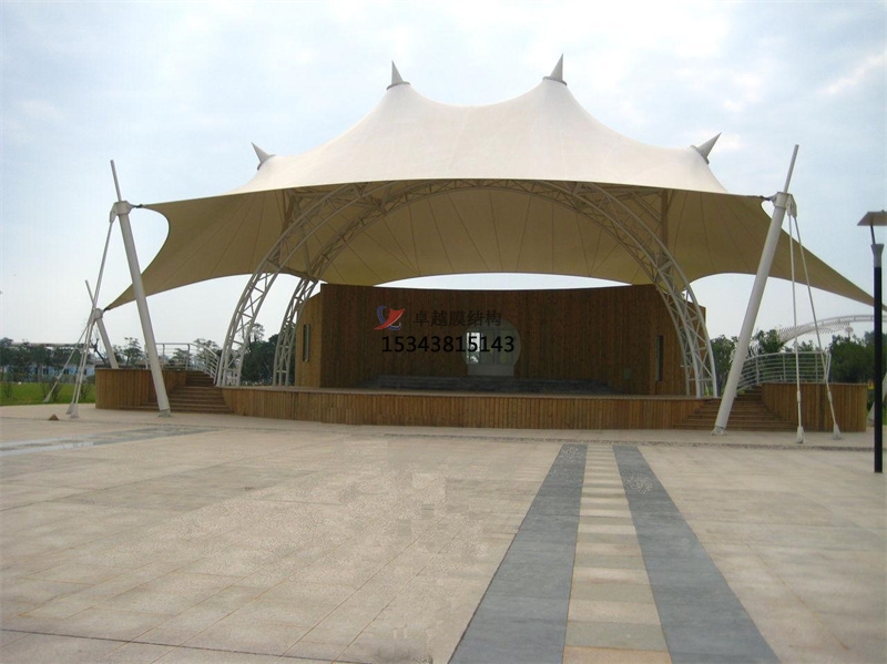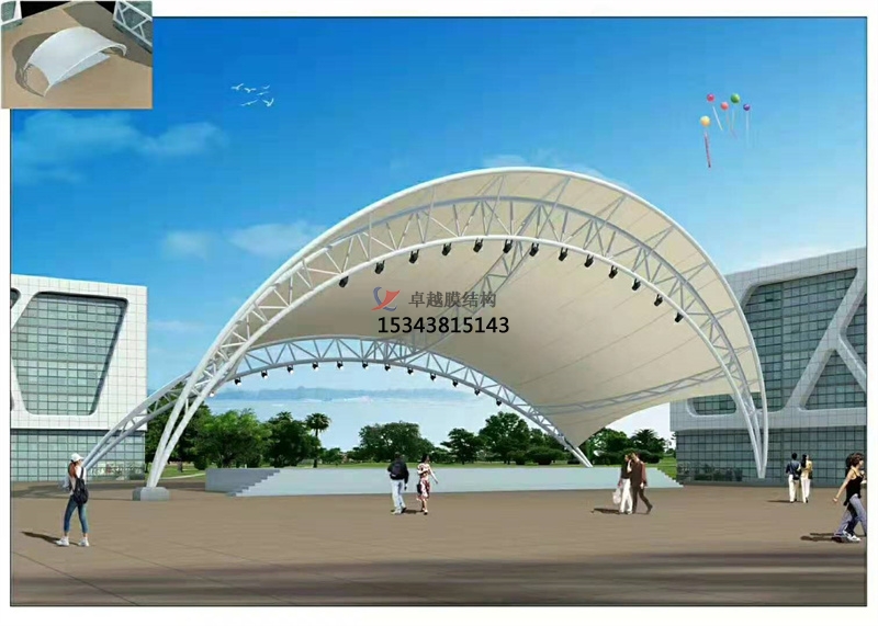 四、舞臺膜結(jié)構(gòu)具有膜結(jié)構(gòu)建筑的所有優(yōu)點(diǎn):外觀雅致飄逸,空間開闊靈透、結(jié)構(gòu)輕致、透光阻燃、自潔性好、安裝快、節(jié)能降耗、造價適中、維修便捷。