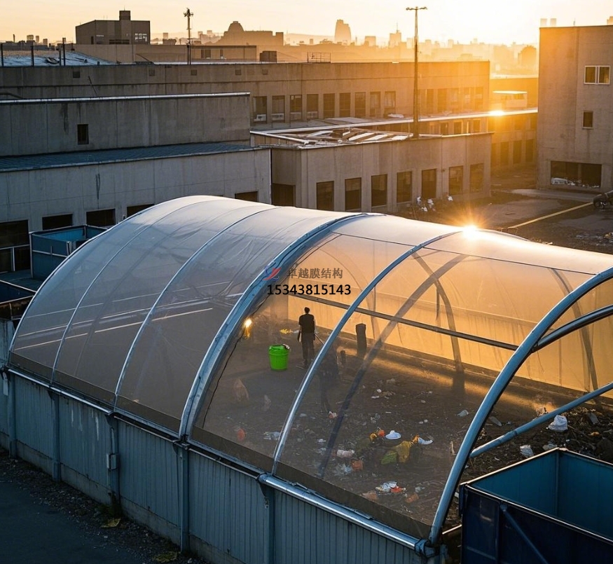 在城市生活垃圾中轉(zhuǎn)站中,膜結(jié)構(gòu)罩棚應(yīng)用普遍。如北京某區(qū)的多個(gè)生活垃圾中轉(zhuǎn)站,采用充氣式膜結(jié)構(gòu)罩棚,不僅解決了垃圾異味擾民問題,還提升了垃圾轉(zhuǎn)運(yùn)效率,周邊居民對(duì)環(huán)境滿意度顯著提高。
