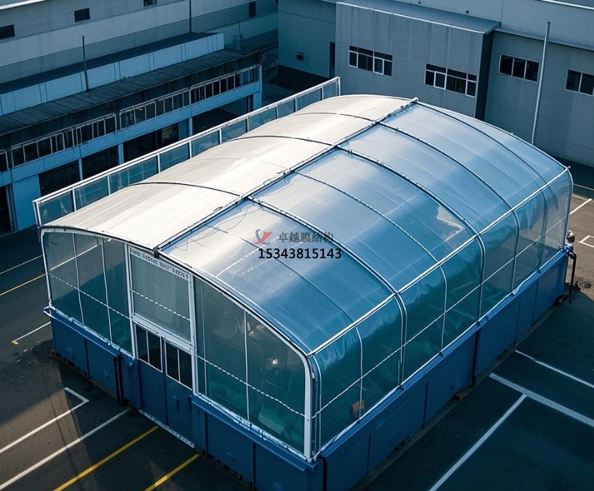 膜結(jié)構(gòu)罩棚主要依靠膜材自身強(qiáng)度及預(yù)應(yīng)力來承受外部荷載,形成穩(wěn)定的空間結(jié)構(gòu)。在垃圾中轉(zhuǎn)站應(yīng)用中,常見的有骨架式膜結(jié)構(gòu)和充氣式膜結(jié)構(gòu)。