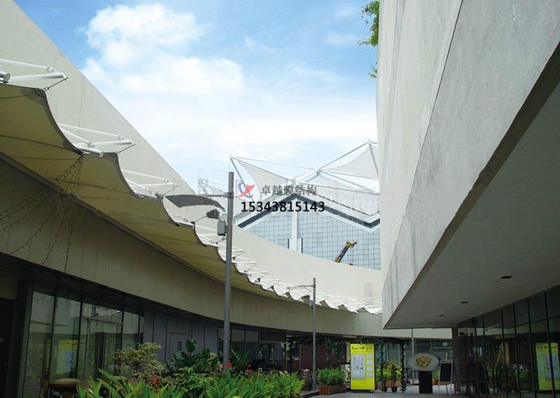 咱們都知道張拉膜是鋼索從邊上穿過,拉出幾個角并固定在不同的高度之上,會構(gòu)成凹凸落差,這樣的落差看起來是很美好的,相對的打開面積就會大許多,由于在占地面積的暗影中,實(shí)踐許多是堆疊不筆直的。